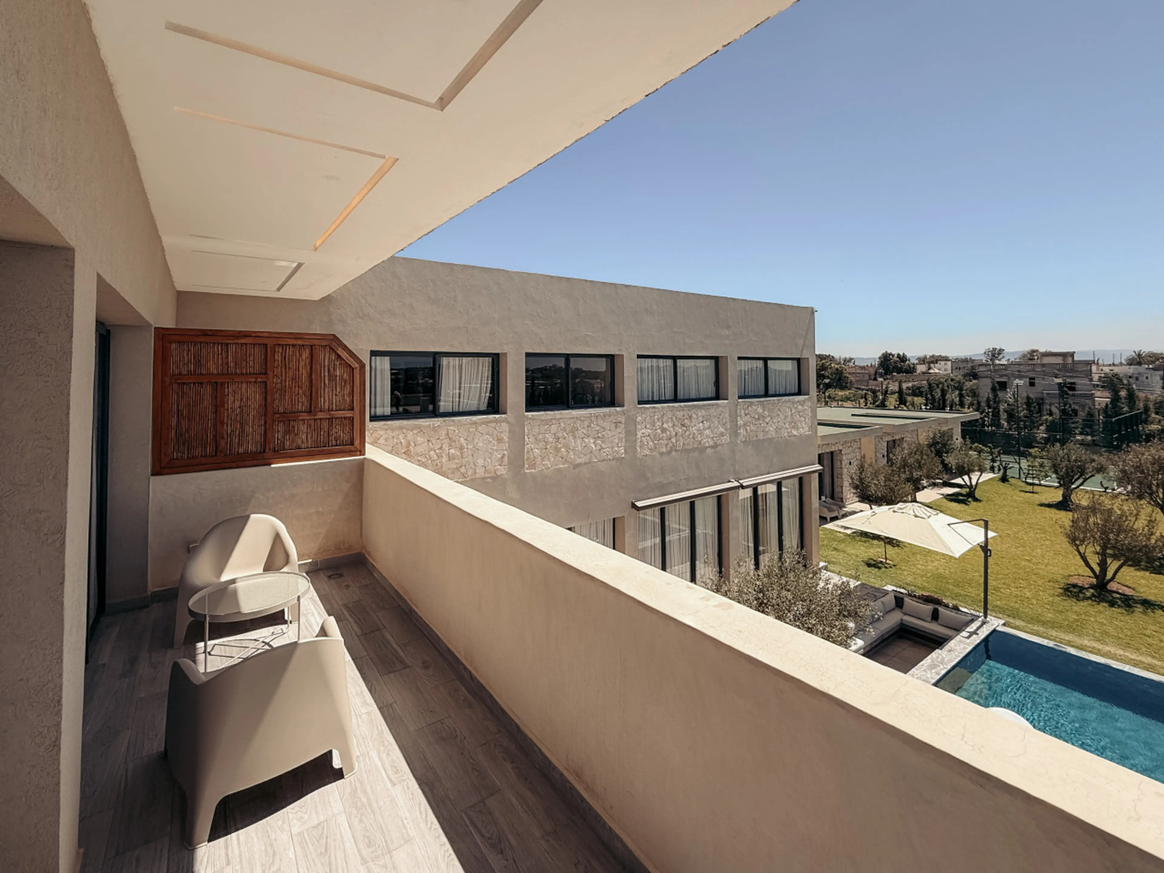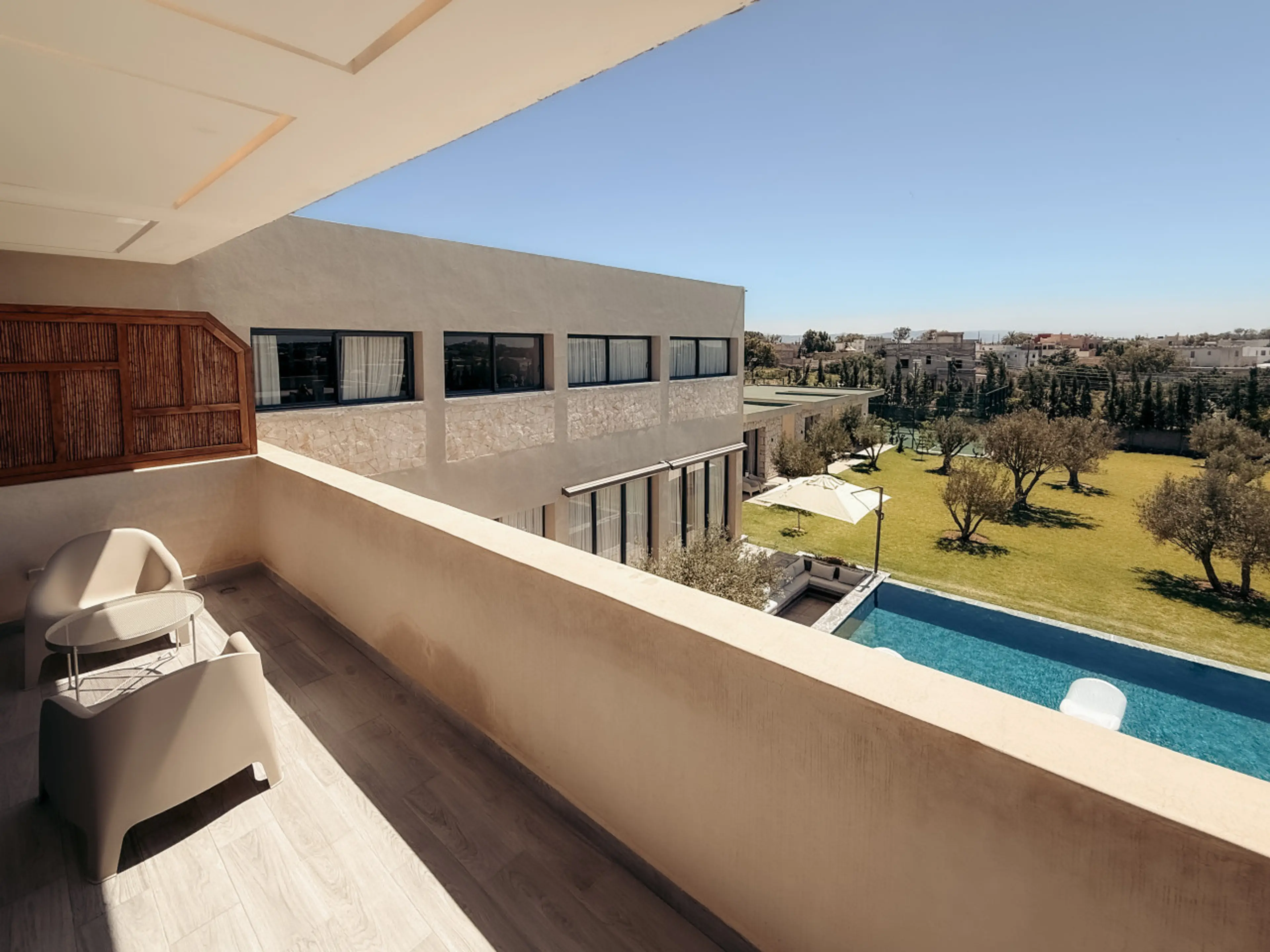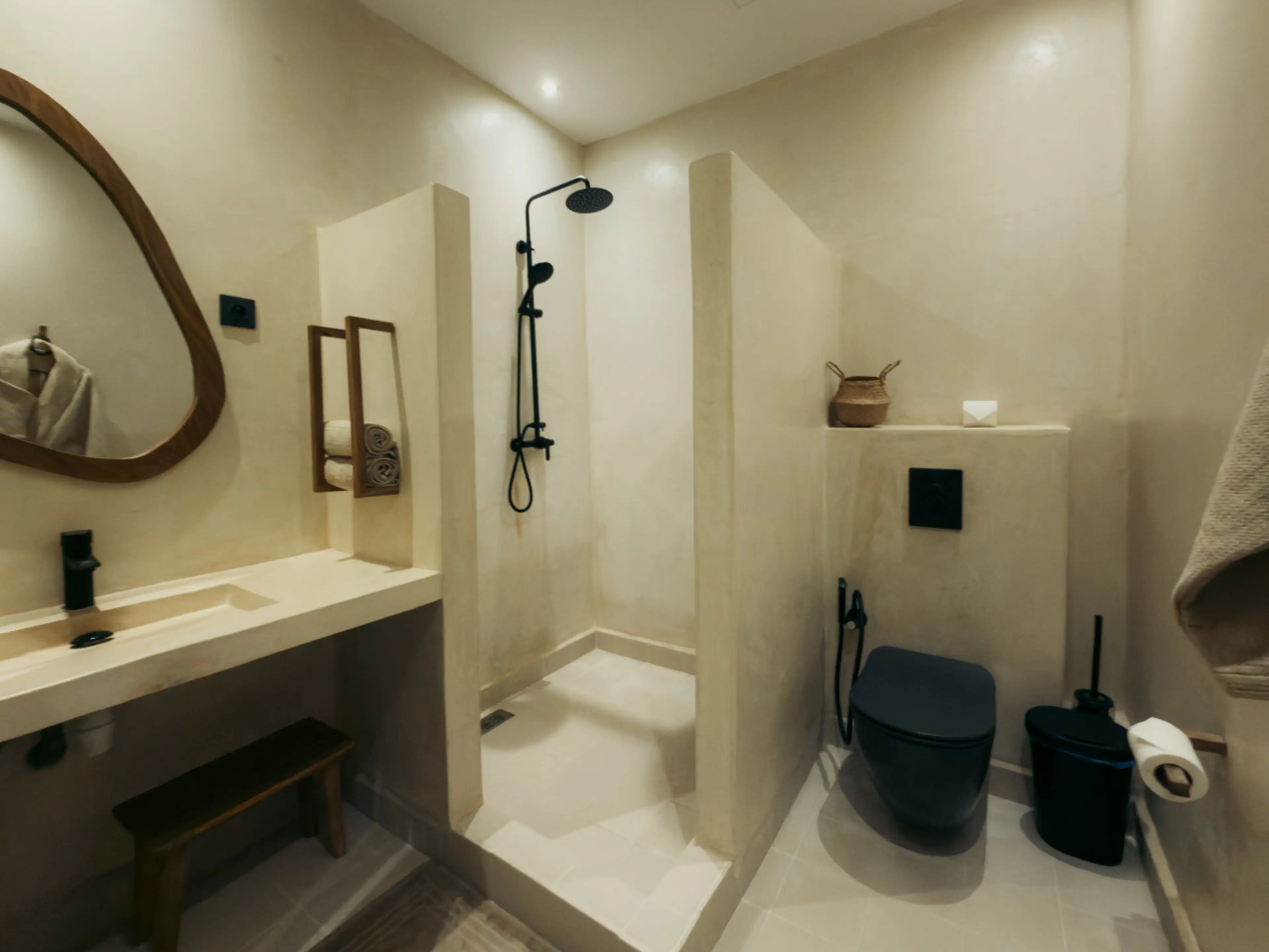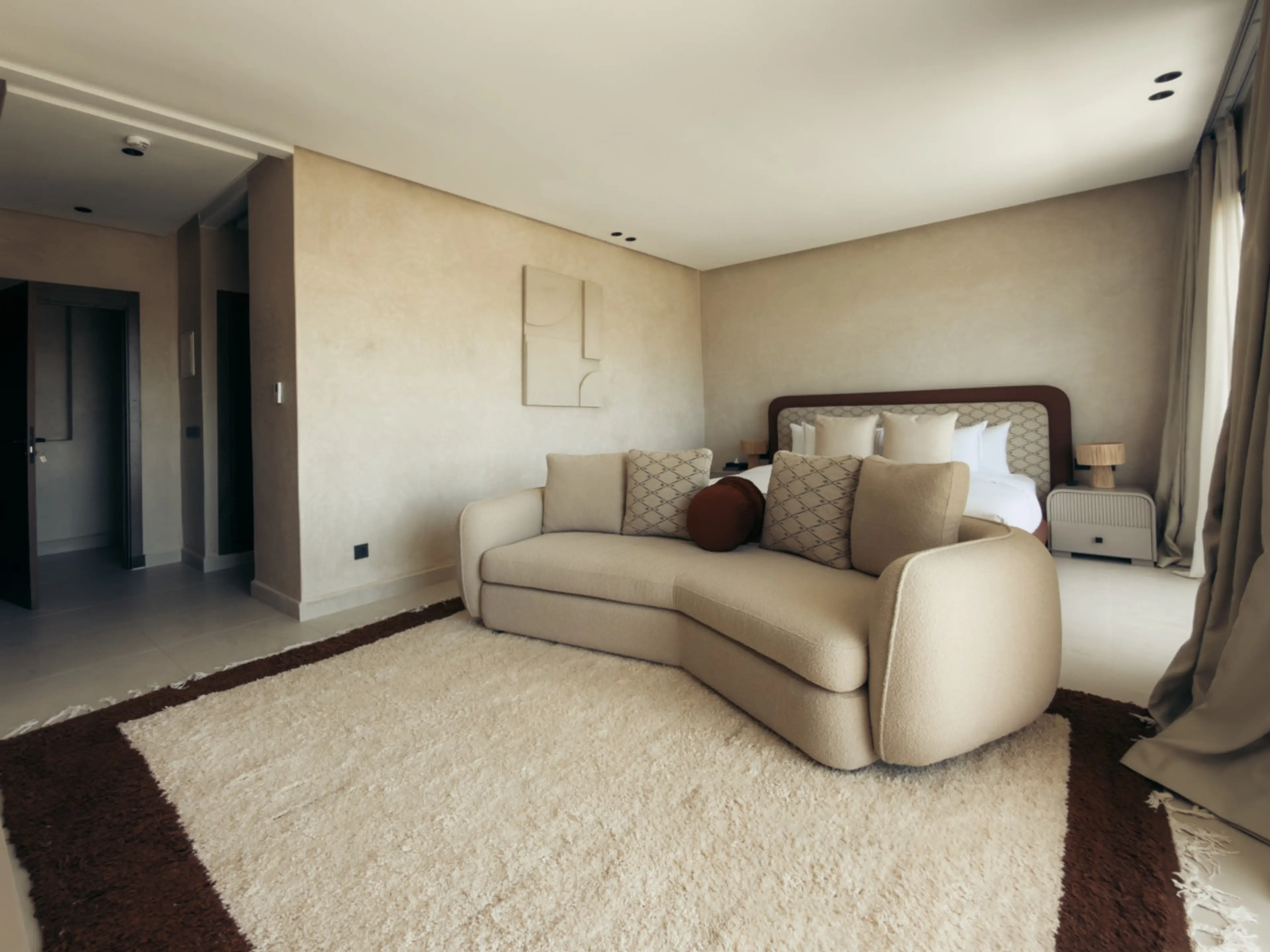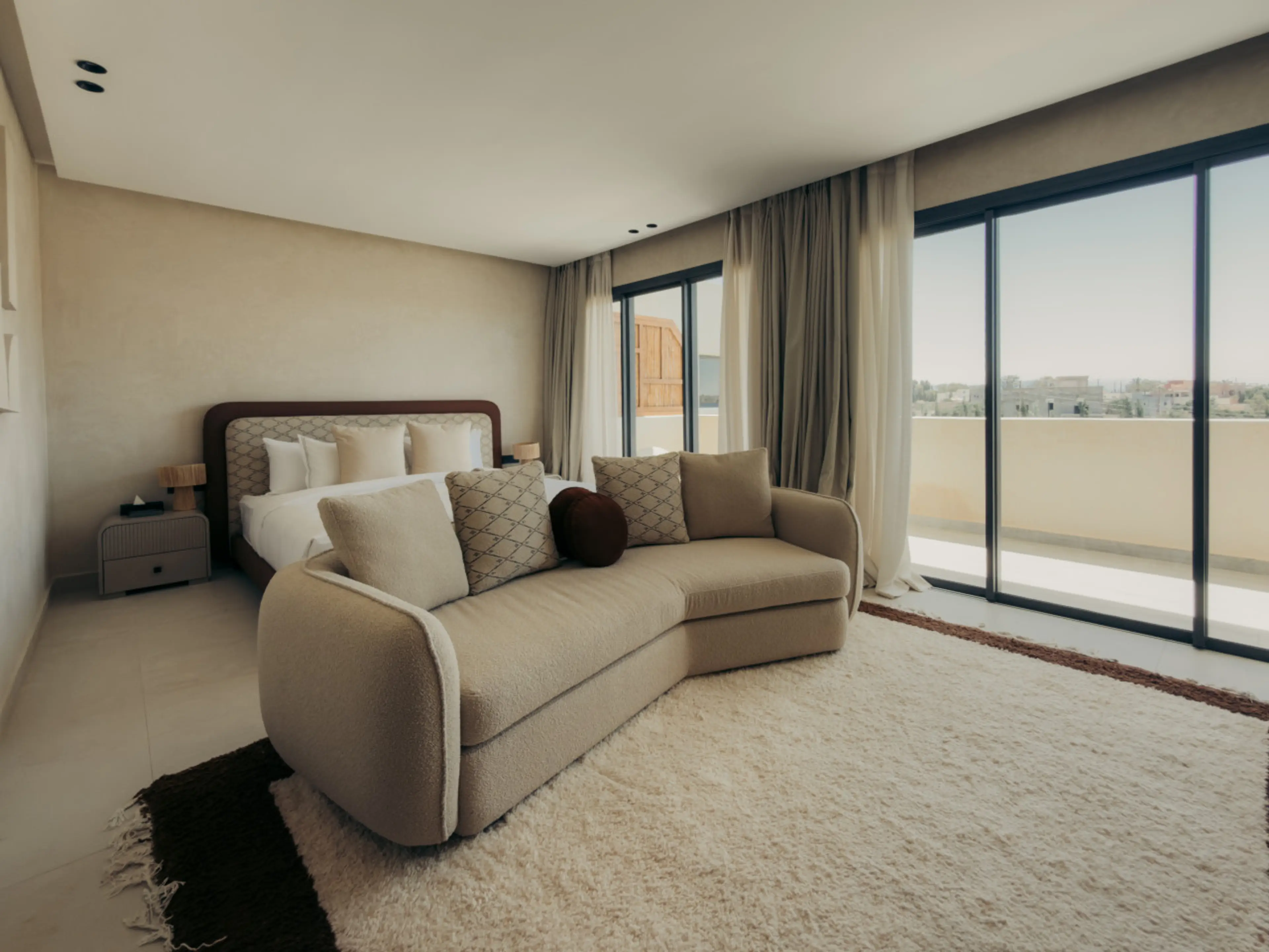 A peaceful, light-filled private room with its own balcony in Maison Azen, a thoughtfully designed villa nestled in the countryside just 12 minutes from Essaouira. Blending soft natural tones with contemporary Moroccan architecture, the space offers a calm and refined retreat. Guests have access to ...