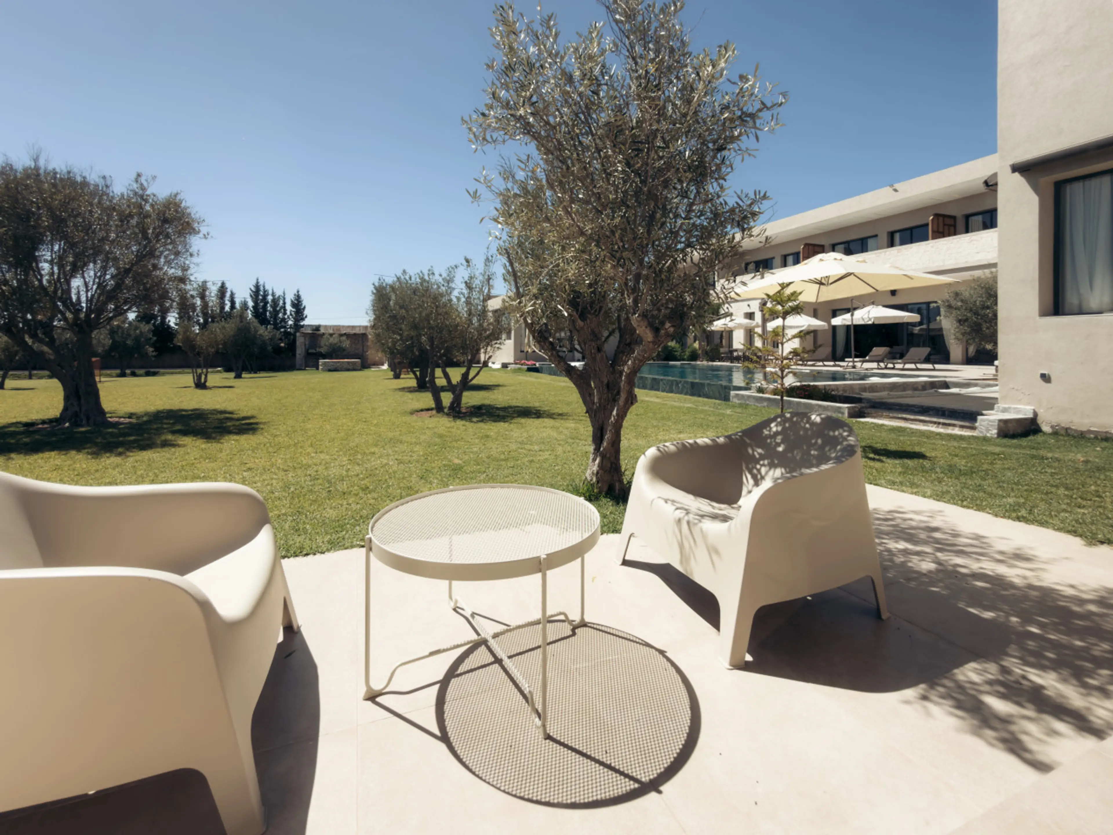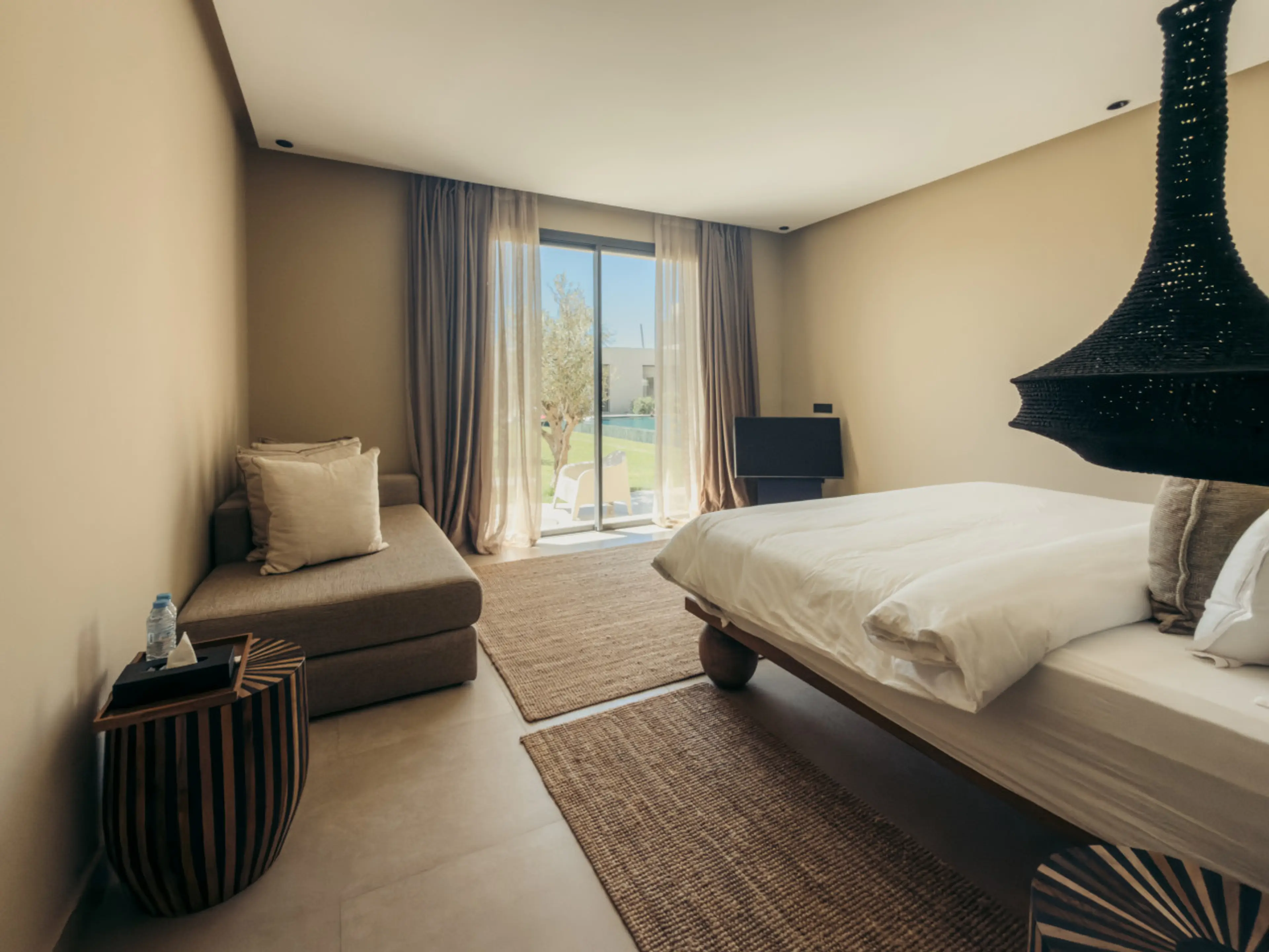 A stylish private bungalow at Maison Azen, just 12 minutes from Essaouira. Featuring its own patio with direct access to the garden and pool, the space offers a relaxed indoor-outdoor living experience with tranquil pool views. Designed with soft natural interiors and modern Moroccan touches, it inc...